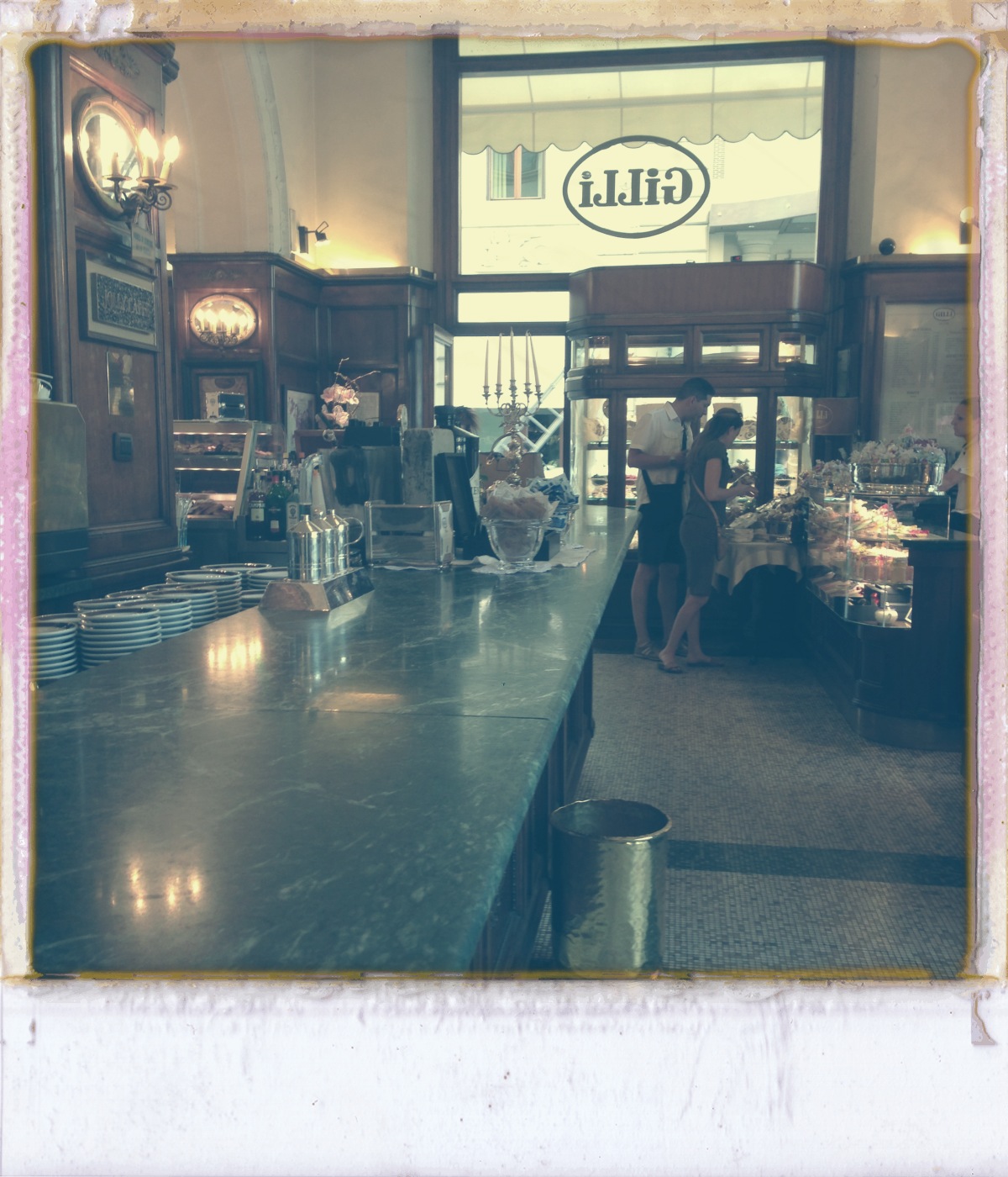 Yet I am trying hard not to play favourites here, and Gilli too is a forever favourite place for me. The Piazza della Republica lacks the intimacy and decorative elements of the Piazza della Signoria, so space is much more open and there is a dramatic grandness to everything on the piazza itself. So Gilli has a much more energetic vibe to it, and it is wonderful for aperitivo time, a great place to have a Campari, and sip the Florentine born (some claim here at Gilli) cocktail of the Negroni. But here too the interior of this classic caffe is really where the beauty is, a true jewel of cafe life. While not a large space, it feels quite grand with chandeliers and marble, and the back sitting room is very elegant. But it’s the action of standing with those at the counter, watching the coffee being made, where you feel the heart of this place. Whether to pick up a thimble of espresso or to have a drink, standing at the altar of this caffe’s counter is one of the great experiences of Florence.