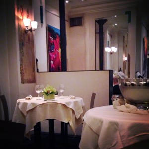 The Elegant One: Les Bouquinistes (53 Quai des Grands Augustins, tel. +33 1 43 25 45 94 ) Modern classic French with flair, the menu is ‘designed’ by famed chef Guy Savoy from daily seasonal ingredients. Small, elegant space reflects the food: sophisticated while still being accessible. On the expensive side but worth it as every last bite is exquisite.