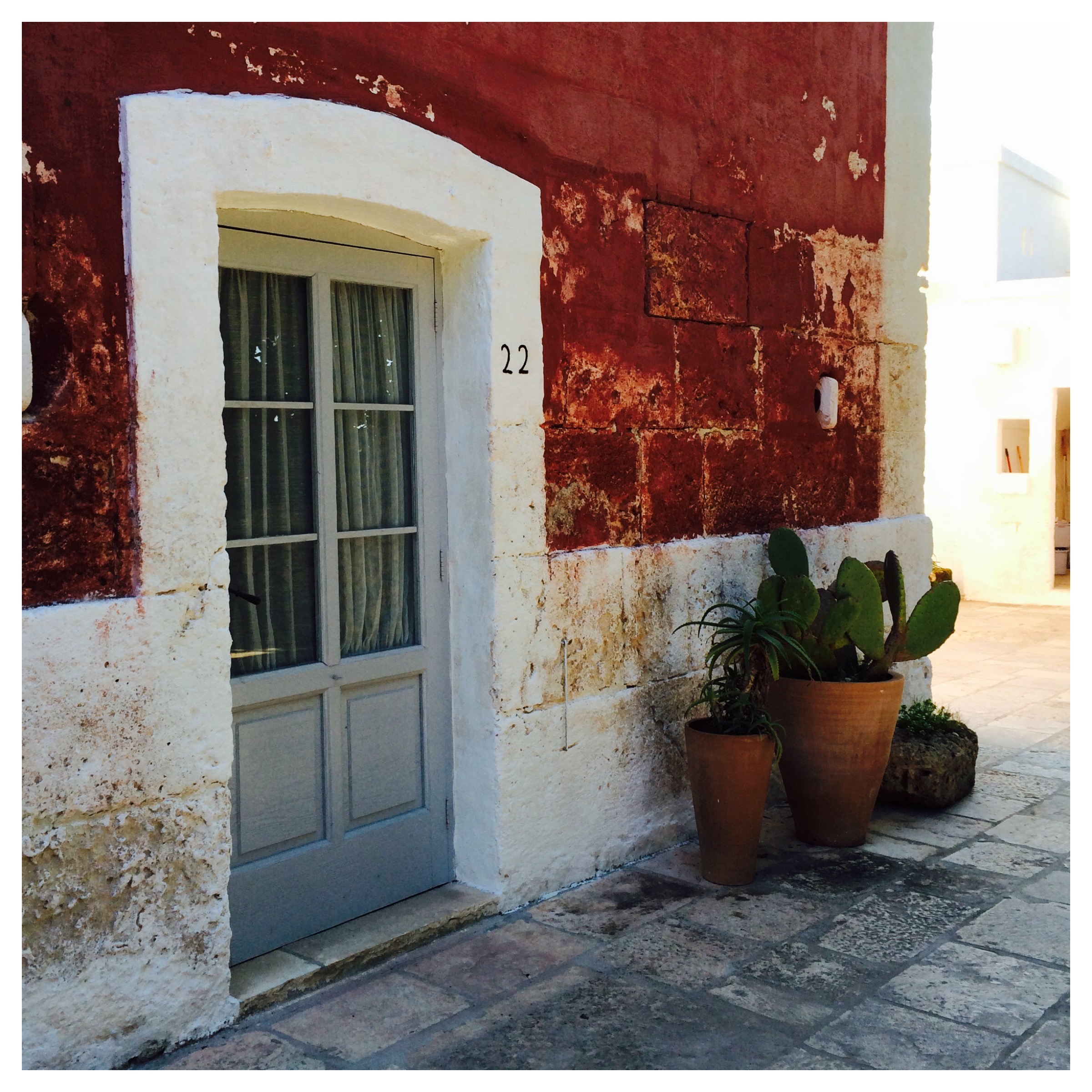 Walking through the property one feels a sensual charge of the gorgeous natural surroundings heightened with polished details. The central stone farmhouse is painted red with pale blue accents and enveloped by the local cacti plants so intricately part of the Pugliese countryside. The masseria, or farm, displays laid back formality from the ease at which my bags were taken to my room -before having to be checked in at the front desk-, to the communal dining offering homemade cooking, it felt very much like staying in someone’s home.