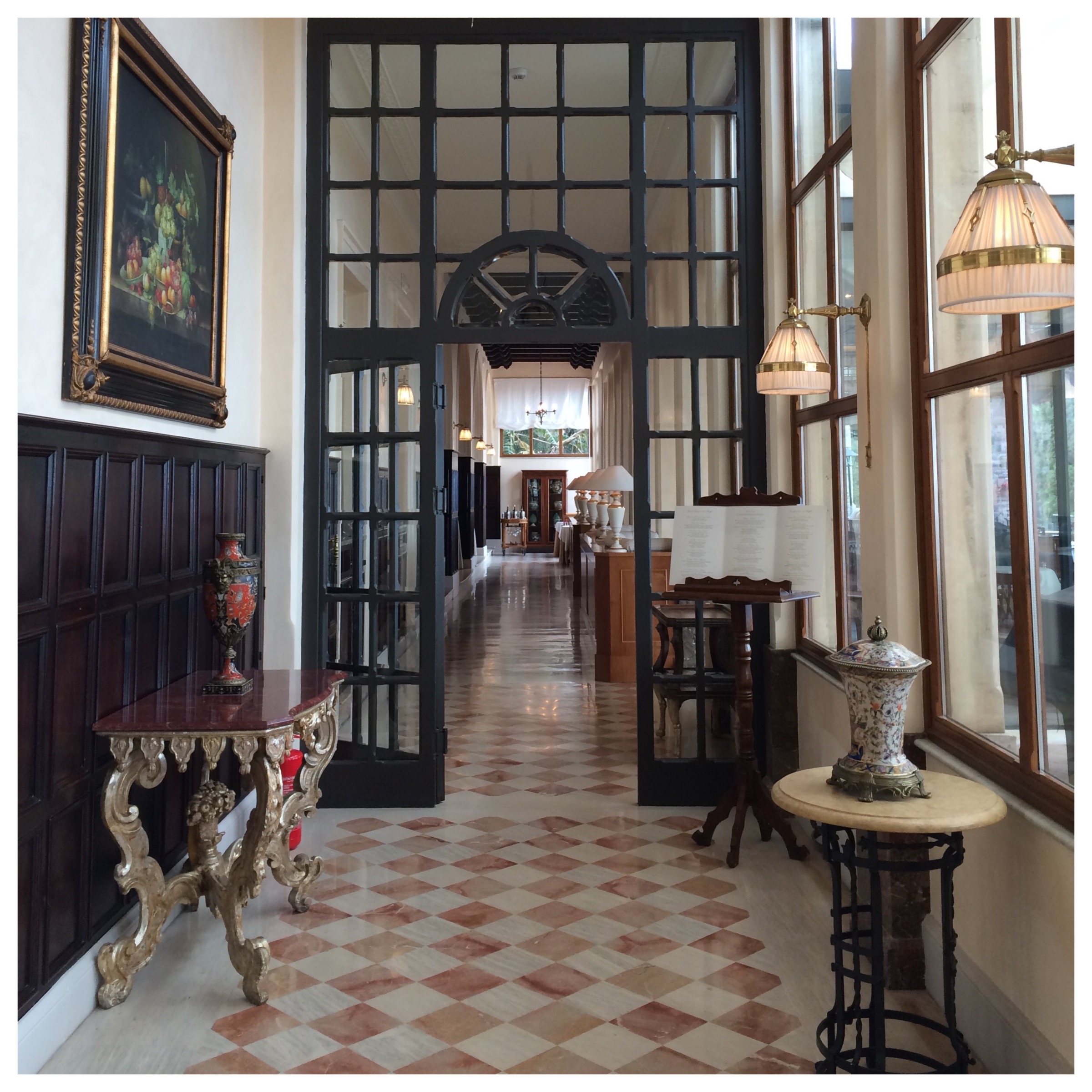 With only the smallest of delays, and having finished my drink at the bar, I was shown to my stylish and very comfortable room. Decorated in period pieces but with modern touches and warm white tones, it felt comfortable from the moment I walked in. Being evening the bed was already turned down and some complimentary biscotti put out on the table, welcoming me. And halleluiah! there was an actual electrical outlet next to the bed right over the bedside table. Meaning I could charge my phone overnight and still keep it next to the bed to use the alarm. It is such a rare feature to find, even in top hotels. Nice detail and very useful. The bathroom was decked out in luxurious Bulgari and Penhaligon’s bath products with a deep tub, plush towels and a little window to let in the fresh air definitely gave it all a very classic feel. Indeed everything in the rooms and throughout the hotel had a very timeless vintage feel.