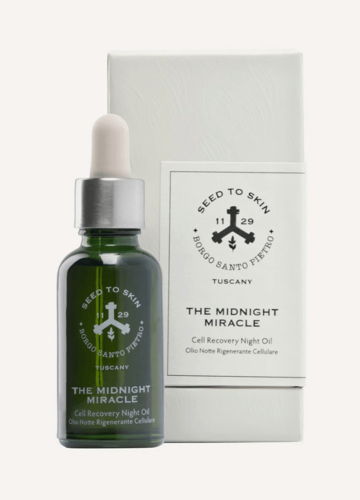 Seed to Skin Midnight Miracle As indoor heat gets turned on and outdoor temperatures drop, skin gets dry and dull so this night oil from Borgo Santo Pietro is a luxurious uplift. Not to mention a bit of Tuscany in a bottle.