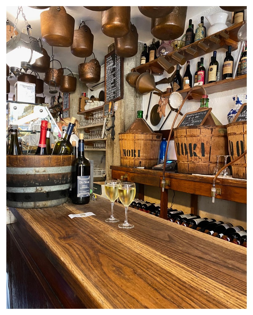 Cantina Do Mori: Cicchetti are a type of Venetian tapas, small plates of bite sized food served at many local wine bars. Aperitivo can be at any hour in Venice! One of the best in town is not far from the Rialto market, a cozy place covered in copper pots on the ceiling and old fashion wine casks. With a fantastic selection of cicchetti and wines by the glass, I recommend trying the Venetian specialty of Baccala Mantecato or creamed salted cod with a nice cool glass of Prosecco.