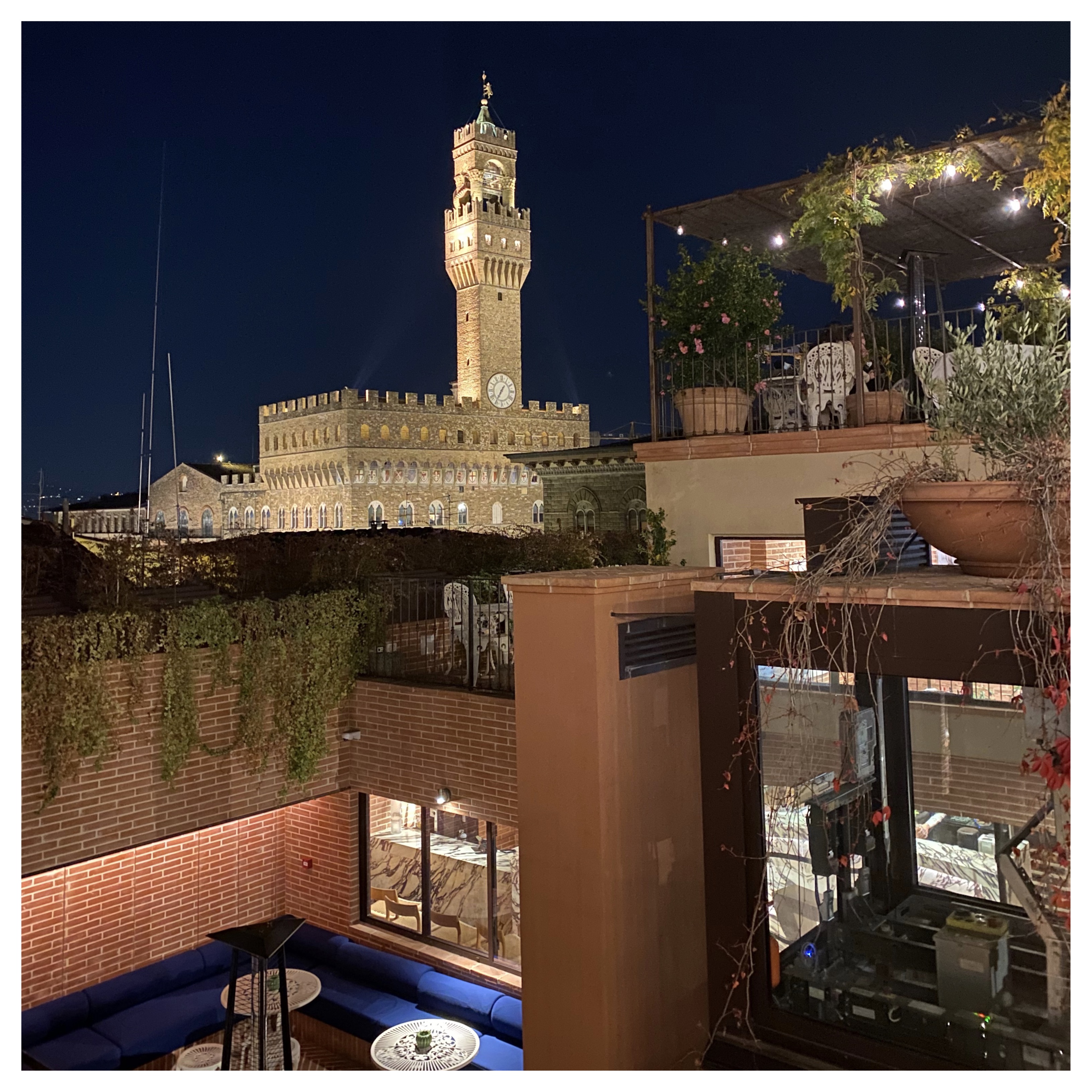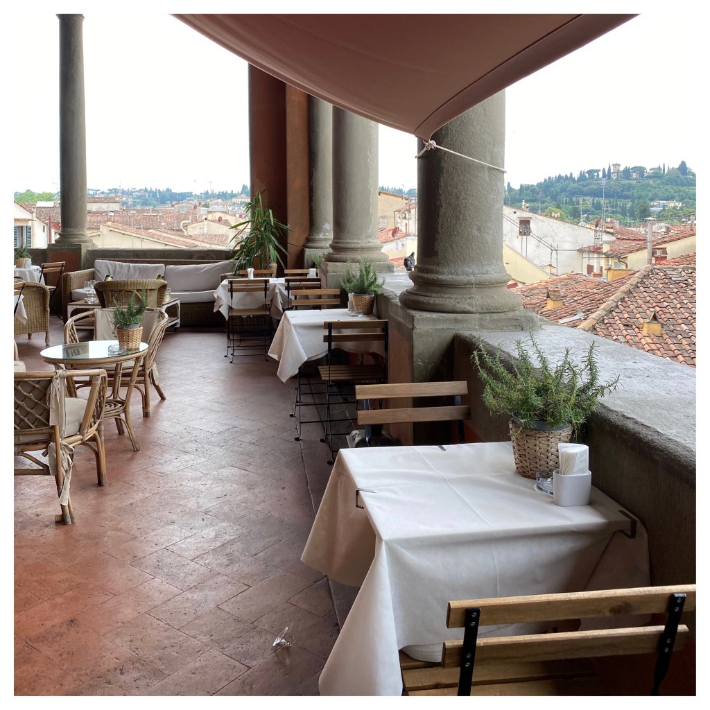 Loggia Roof Bar There is something perfectly Firenze about this roof top bar overlooking Piazza Santo Spirito. In a typically Tuscan building which is also a private hotel, their roof deck terrace offers wonderful views, cocktails, and a loggia style atmosphere to enjoy Florence like a Florentine.