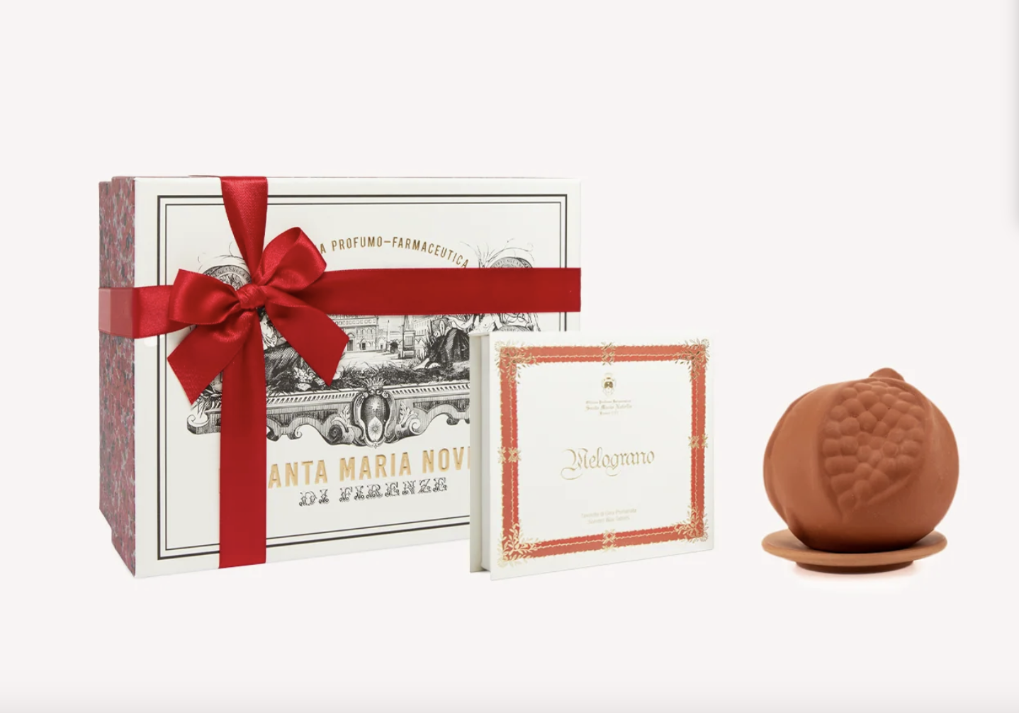 Santa Maria Novella Farmacia Melograno gift box – The scent that will transport you back to Florence and the Tuscan countryside. Elegant presentation and the scented terracotta pomegranate is unique.