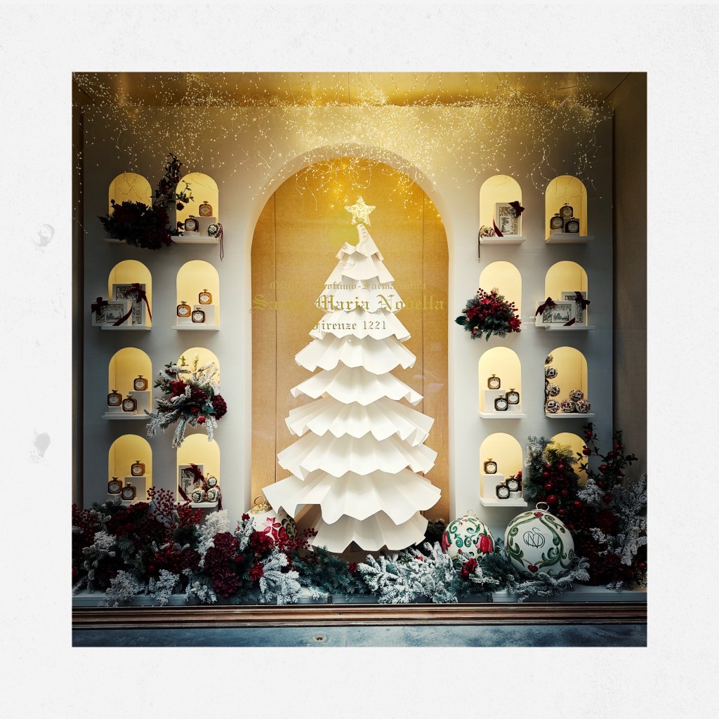 December 19, 2024December 15, 2024Christmas Window in Florence Festive window at Farmacia Santa Maria Novella Share this: Click to share on X (Opens in new window) X Click to share on Facebook (Opens in new window) Facebook Like Loading...