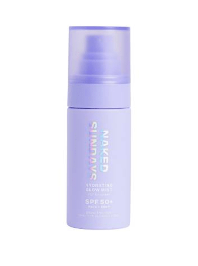 Naked Sundays Hydrating Glow Face Mist Top Up How do you top up your spf over your makeup? Naked Sundays has finally given us an answer with their Face Mist top up. A light mist with SPF 50 that easily, and lightly can be spritzed on the face.