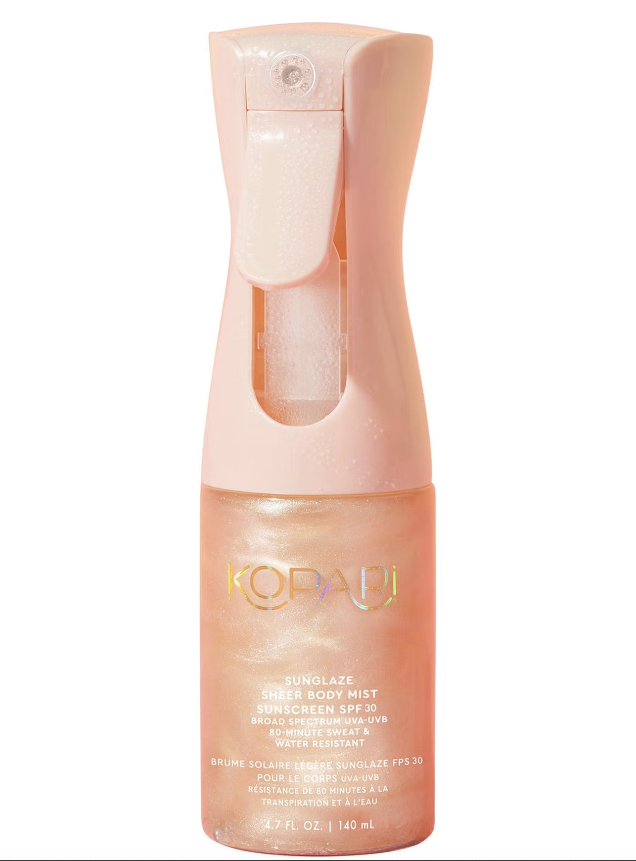 Kopari Sunglaze Sheer Bodymist Sunscreen Up your sunscreen game with this gorgeous body mist. Protects skin with SPF30 while giving a light shimmer.